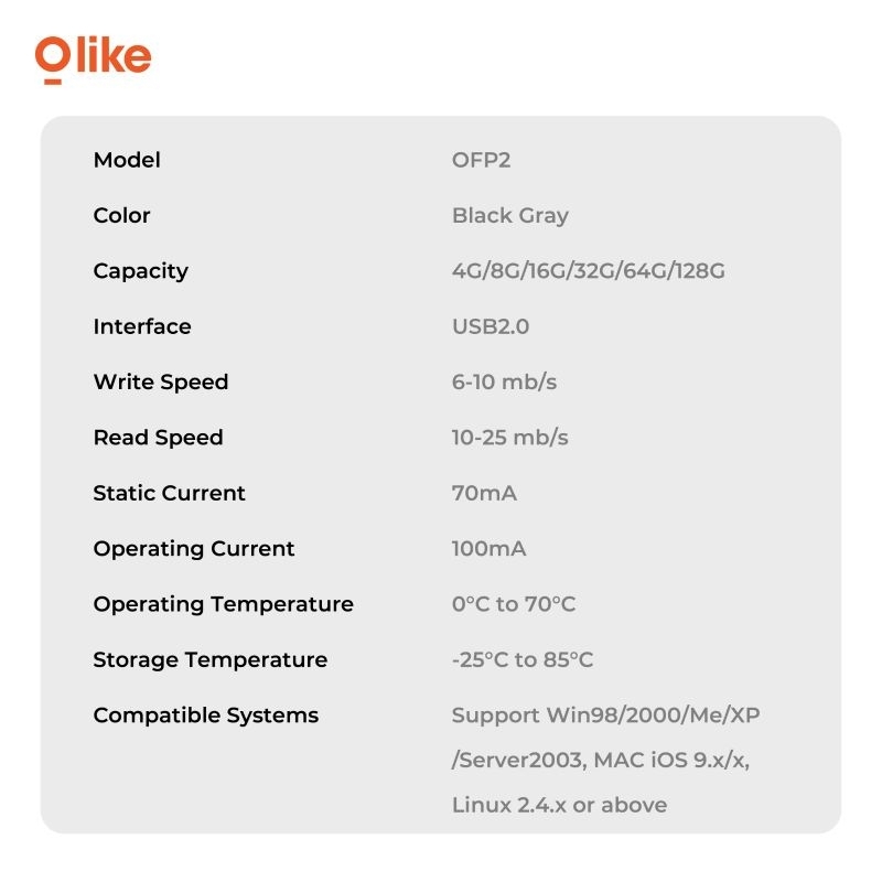 OLIKE Flashdisk OFP204 4GB/OFP208 8GB/ OFP216 16GB/OFP232 32GB/OFP264 64GB USB 2.0