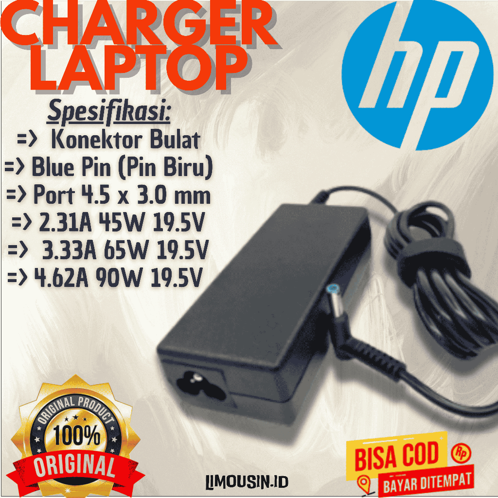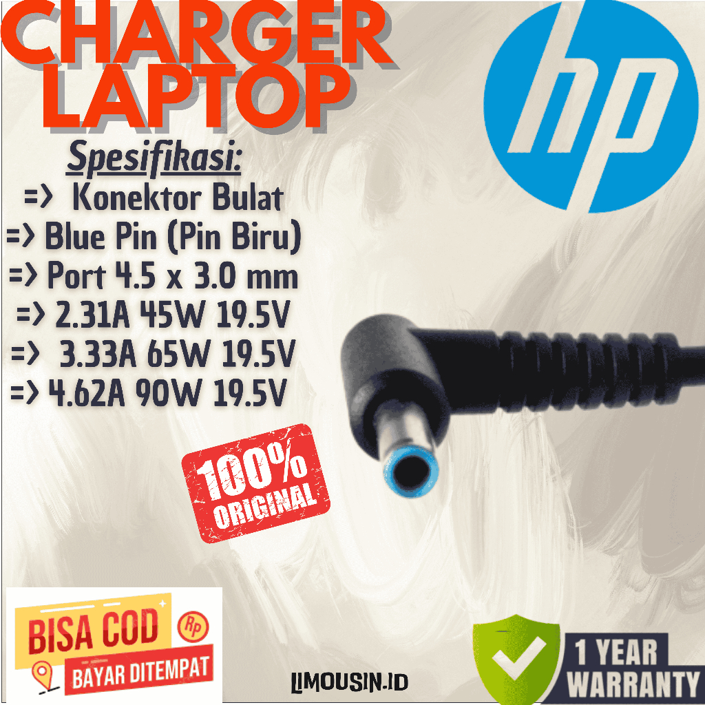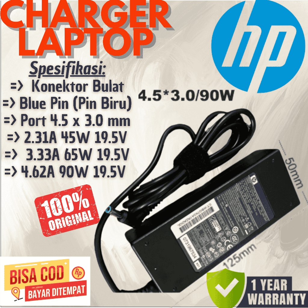 [ORIGINAL JAMIN GARANSI 1 TAHUN] Kabel + Adaptor Charger Laptop HP Blue Pin 4.5x3.0mm