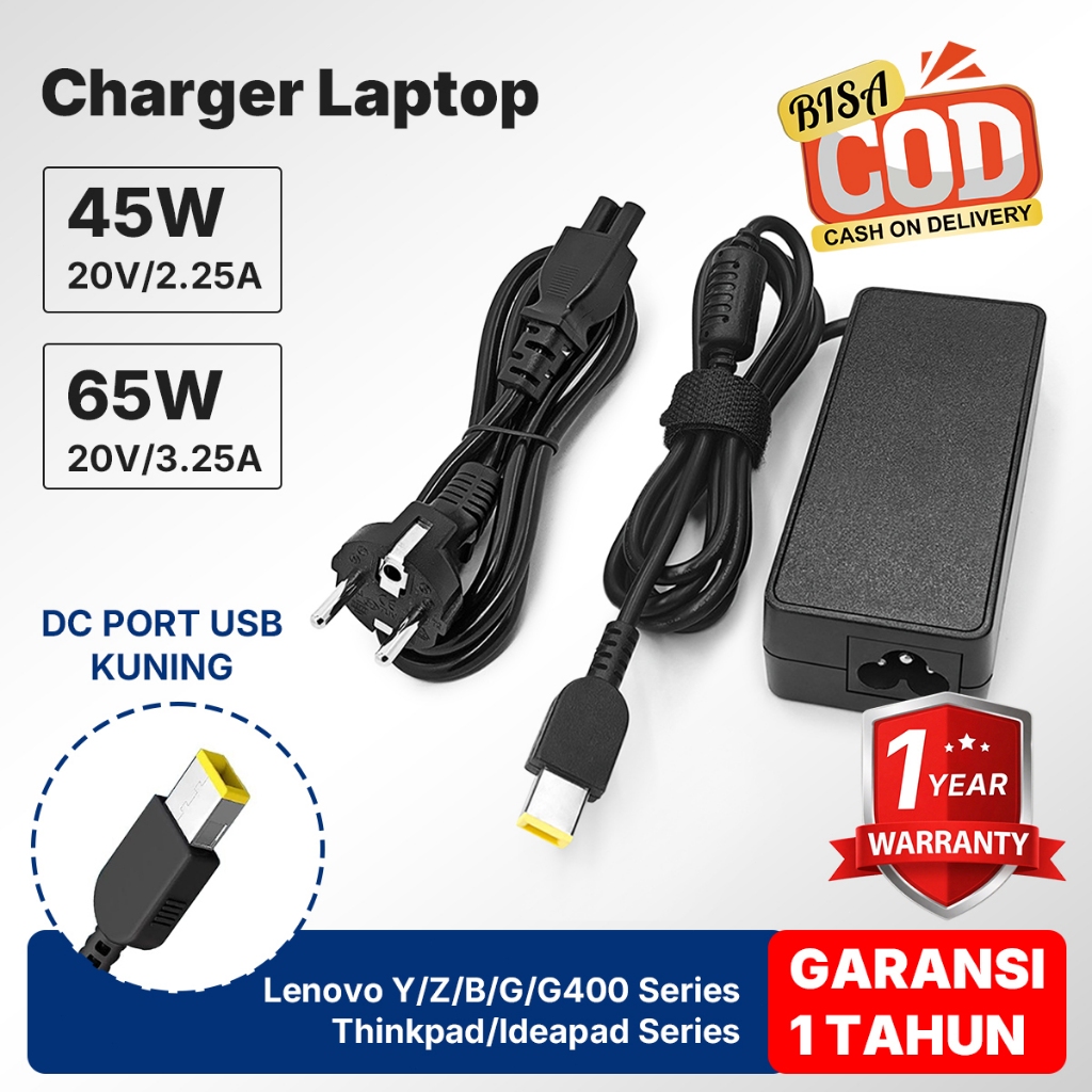 [Garansi 1 Tahun] Original 45w/60w Charger Laptop Lnvo 20v DC Port USB untuk Lenovo Thinkpad/Ideapad/Y/Z/B/G/G400 Series