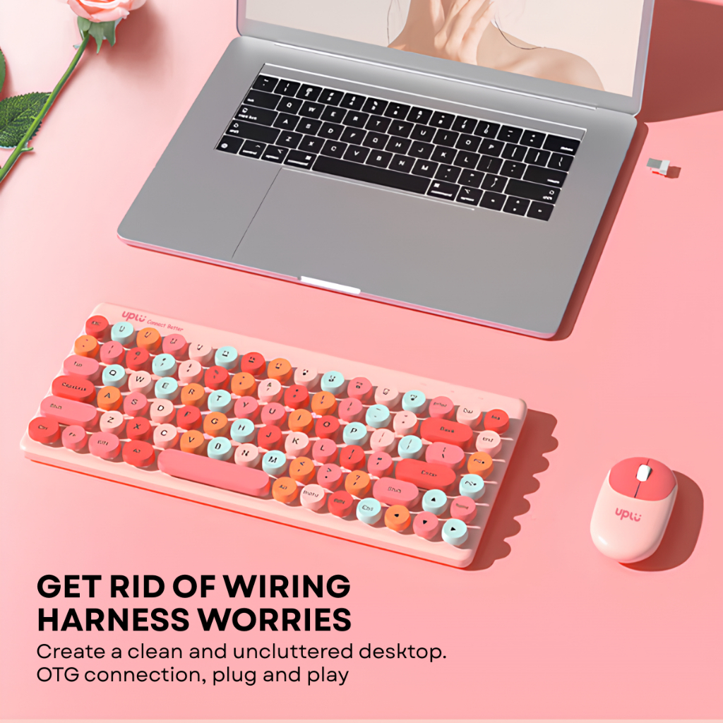 UPLU Keyboard Mouse Wireless Set Silent Click Gaming & Office 86 Key for Laptop Komputer Ipad Tablet