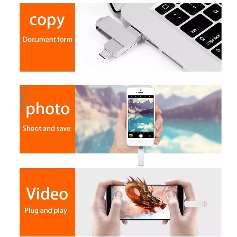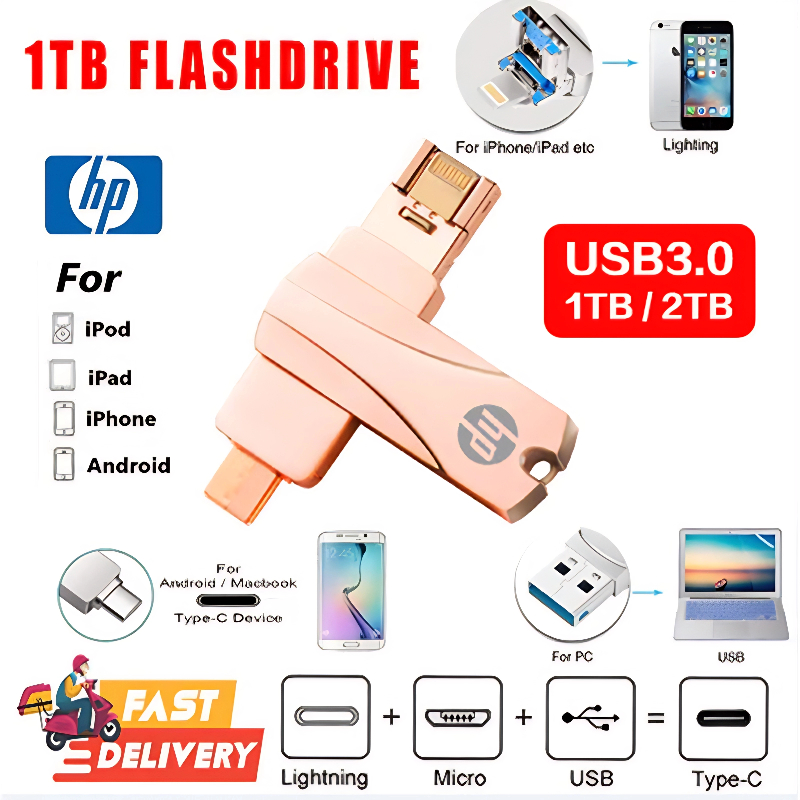 For i Phone/Android/PC Flashdisk OTG 1TB Flash Drive 3 in 1 Rotation Pen Drive [ios/Type-c/USB]