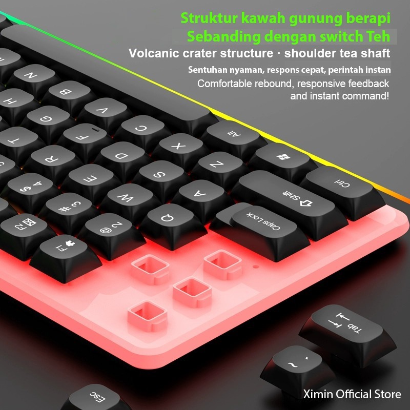 Xim PC Keyboard Mouse RGB Gaming dengan Lampu RGB Cahaya / Termasuk Mouse dan Keyboard - Keyboard Mekanikal untuk PC Desktop dan Laptop - Kabel USB / Keyboard Komputer Berkualitas Tinggi
