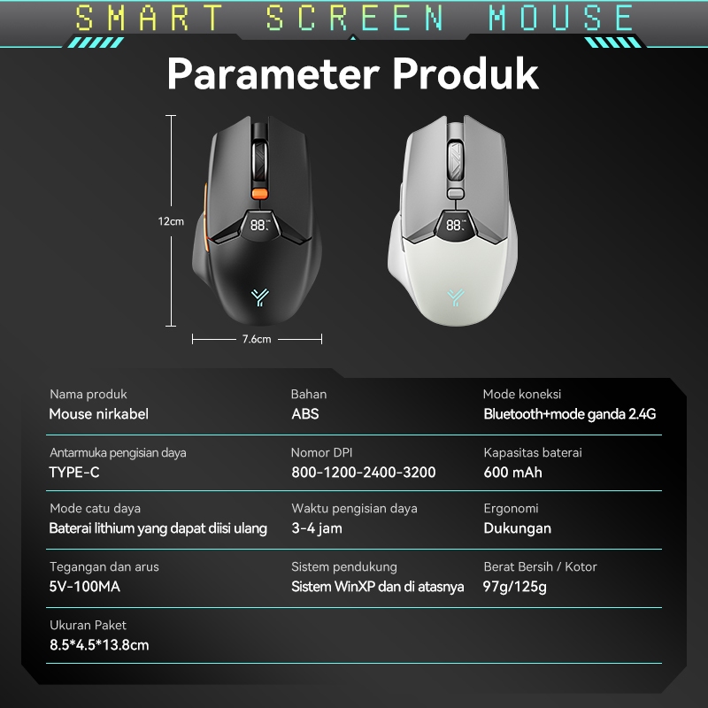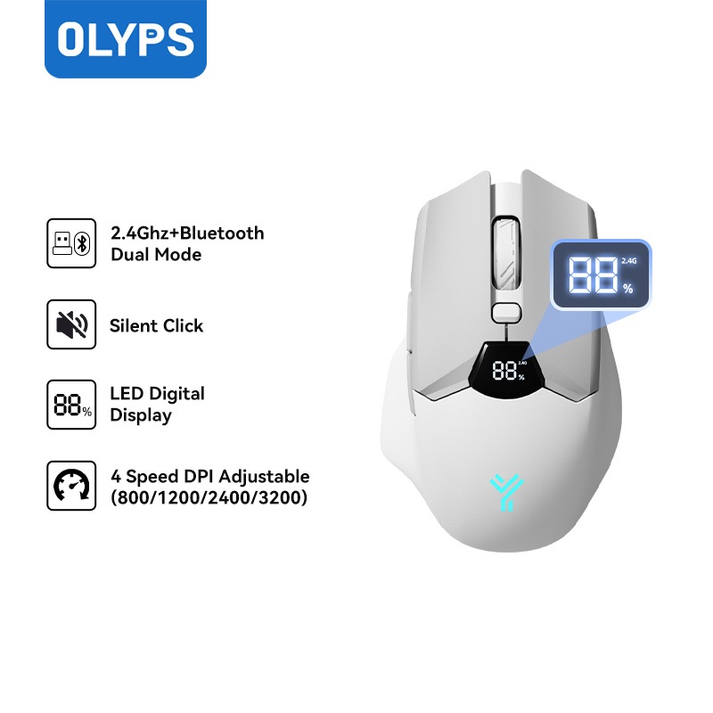 OLYPS Mouse Wireless Bluetooth Silent Click Rechargeable Gaming Laptop Tanpa Kabel 3200DPI With LED