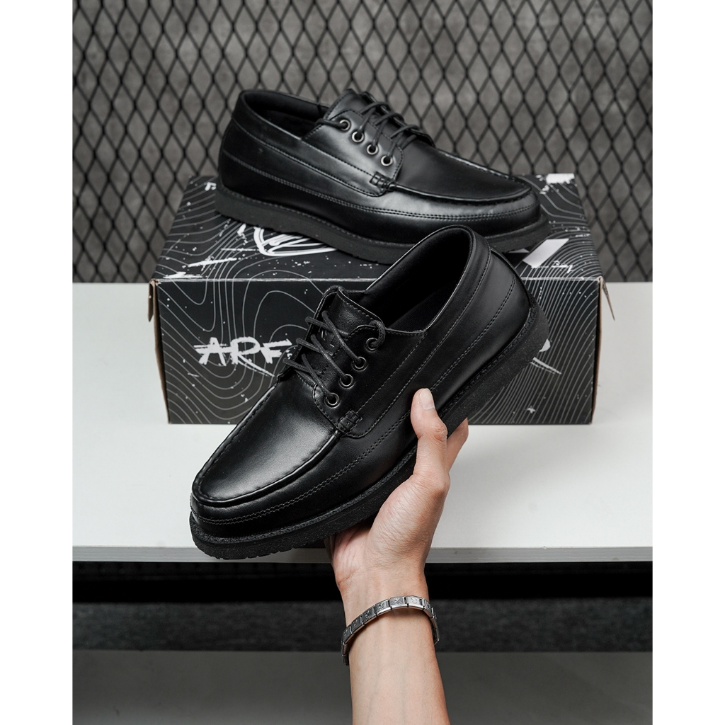 ARF Morris Black Sepatu Formal Kulit Pantofel Oxford Hitam Pria Wanita Kerja Kantor Kondangan Casual Pantopel Fantofel S