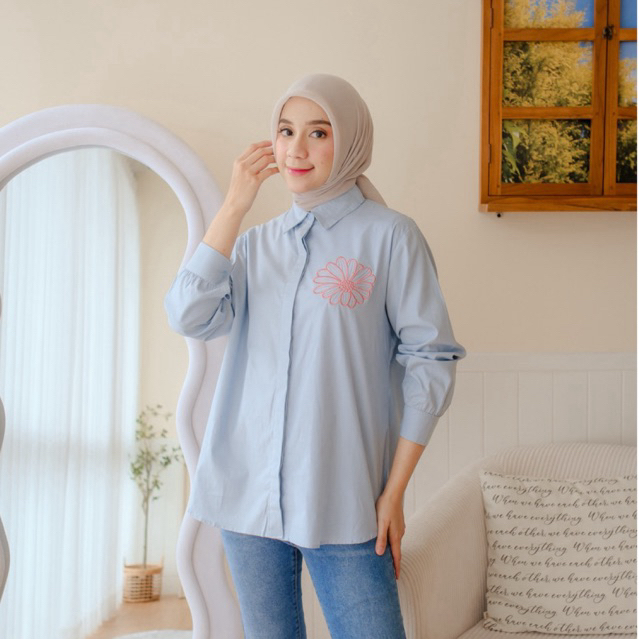 Odeca | Kemeja Floral Stripe | Kemeja Floral Polos | Atasan Wanita