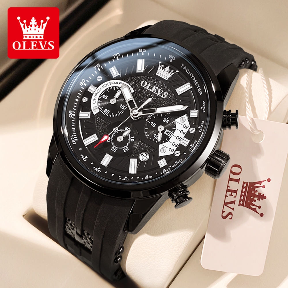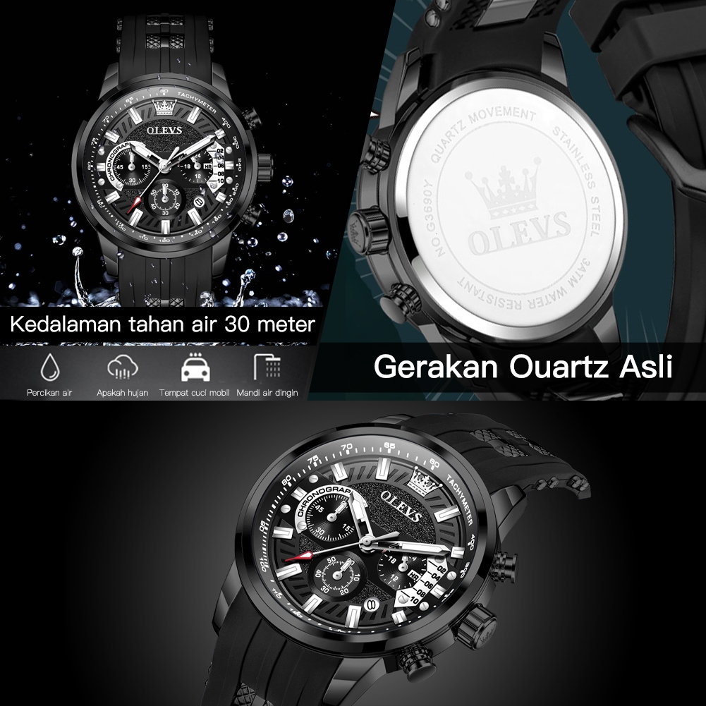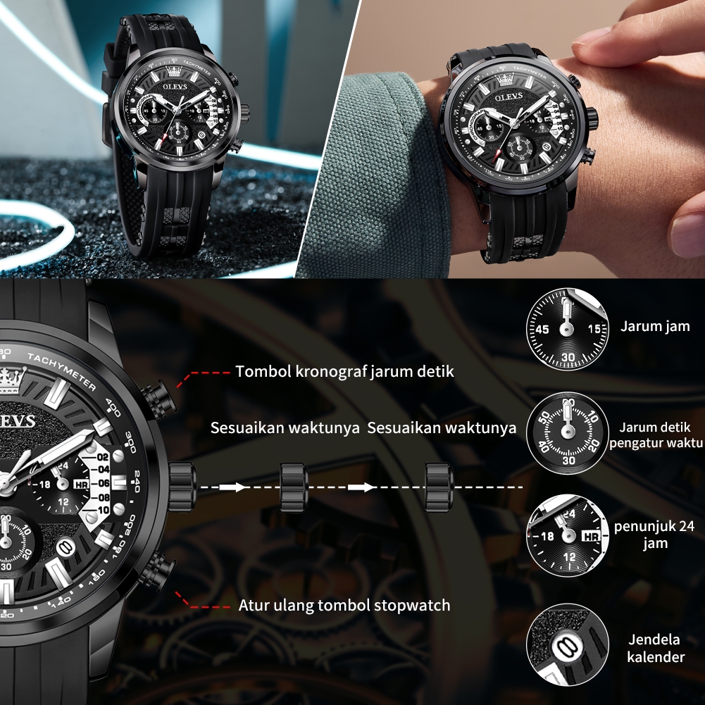 Olevs Jam Tangan Pria Anti Air Original Model Terbaru Kemewahan Kalender Luminous Hitam Man Watch