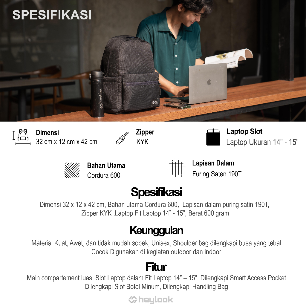 HEYLOOK Official - Tas Ransel Laptop DENZEL 3.0 Waterproof Backpack Pria Tas Leptop 14 - 15inch Anti Air Tas Sekolah Tas