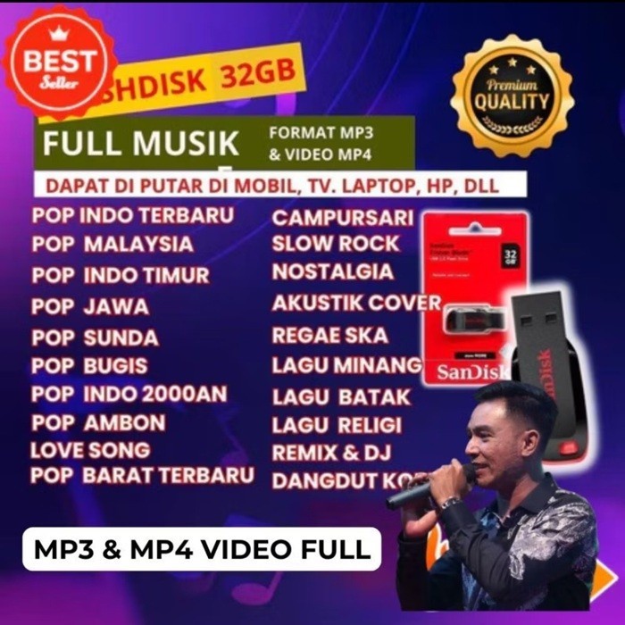 SANDISK FLASH DISK LAGU AUDIO VIDEO MOBIL & SPEAKER BONUS OTG DAN HOLDER HP