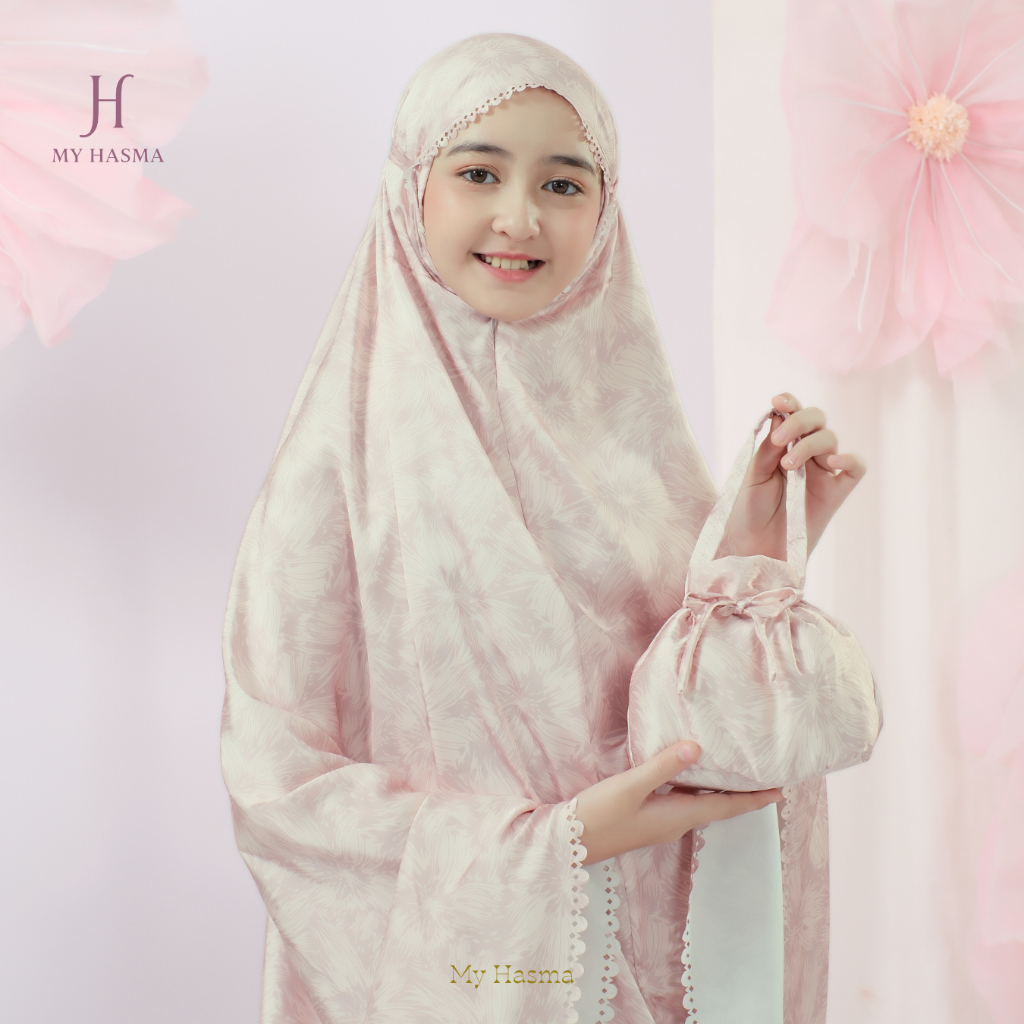 My Hasma - Mukena Anak Perempuan Remaja 2In1 Lasercut Alisha Santorini Silk Putri Salju Series My Hasma