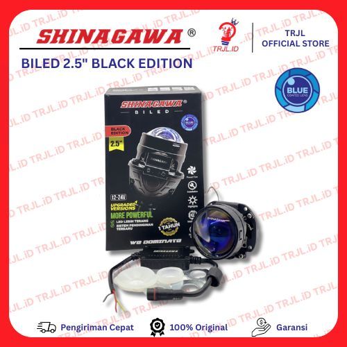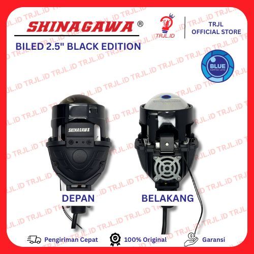 Projie Biled Proyektor 2.5 Inci Biled 2.5 In Hitam Black Edition Lampu Depan Utama + Devil Eyes Blue Lens SHINAGAWA Terb