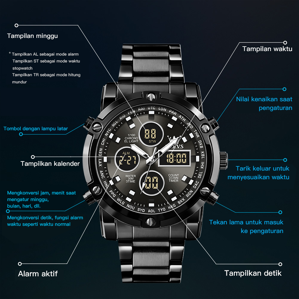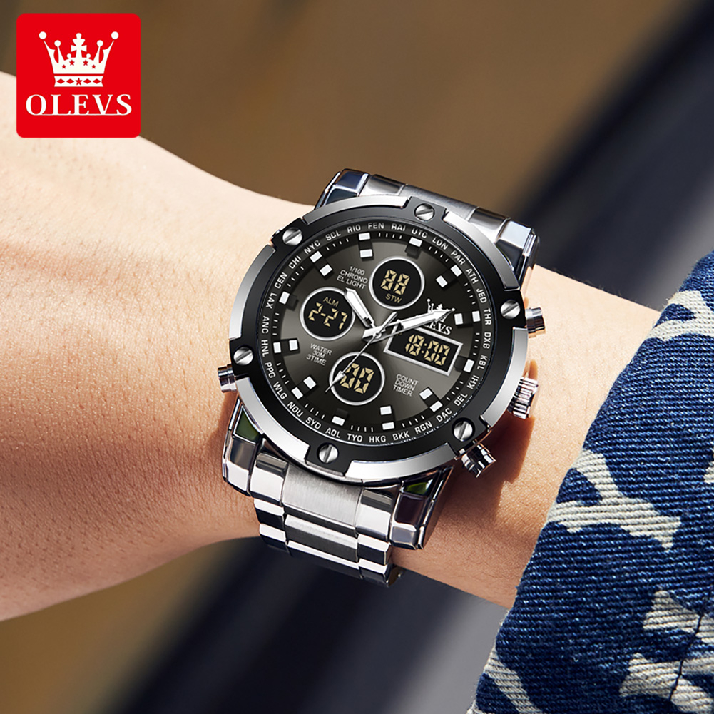 Olevs Jam Tangan Pria Anti Air Original Anti Karat Silikon Luxury Bercahaya Kalender Quartz Watch Men 1106