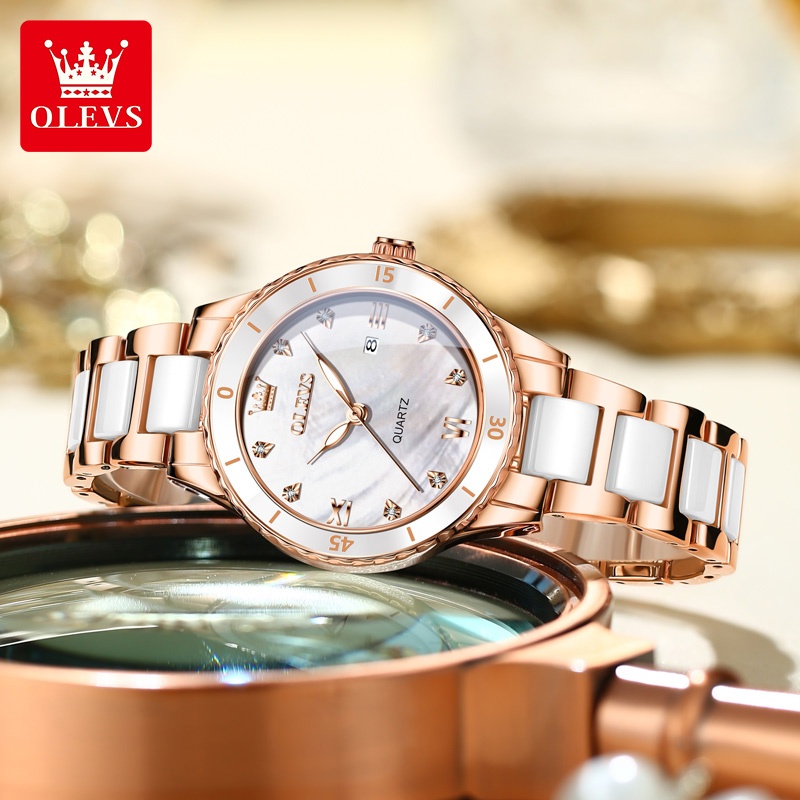 Olevs Jam Tangan Wanita Anti Air Original Unik Keramik Berlian Stainless Steel Fashion Womem Watch Model 9985