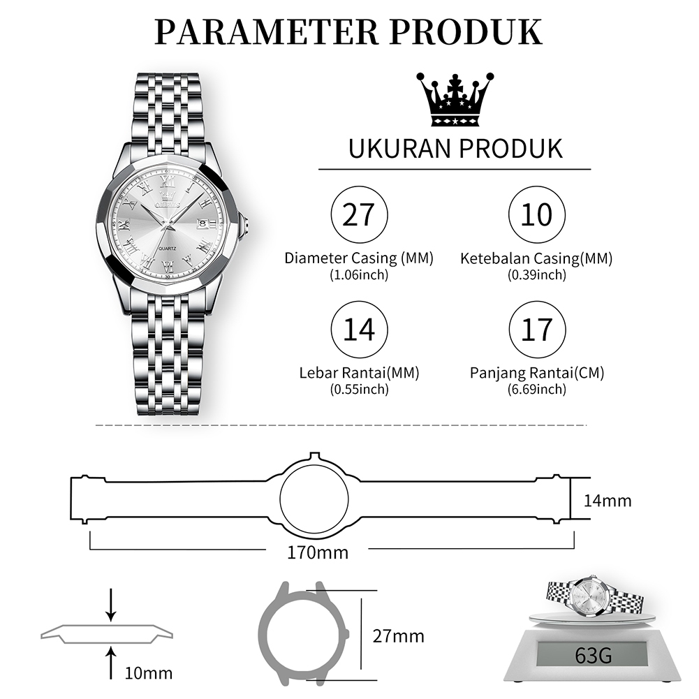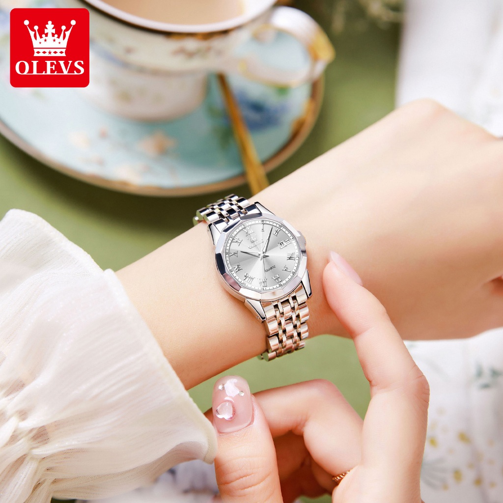 Olevs Jam Tangan Wanita Elegan Mewah Casual Original 100 PERSEN Branded Anti Air Stainless Steel Strap Analog Arloji Quartz Ce