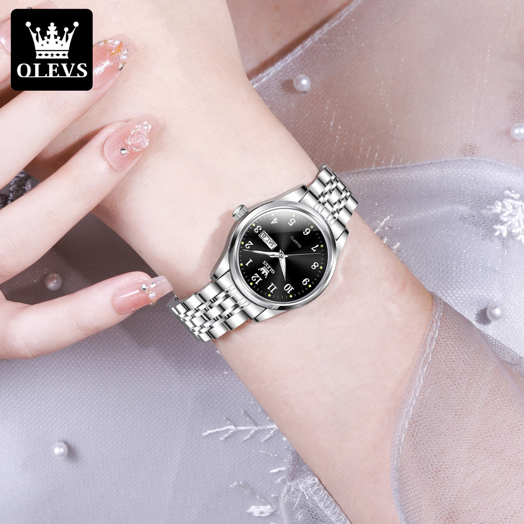 Olevs Jam Tangan Wanita Elegan Original 100 PERSEN Stainless Steel Strap Analog Quartz Anti Air Wanita Art Deco 5006