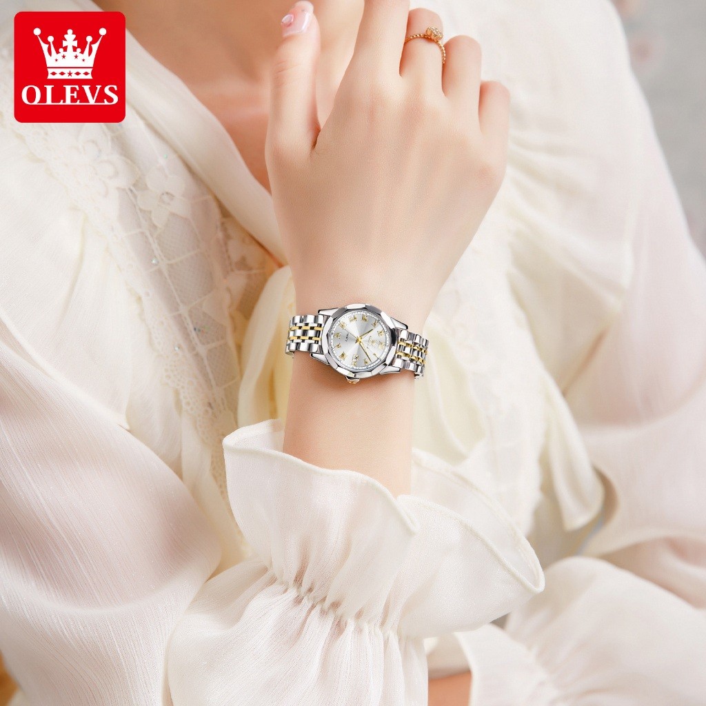 Olevs Jam Tangan Wanita Original 100 PERSEN Stainless Steel Strap Watches Women Analog Quartz Anti Air Luminous Dial 9990