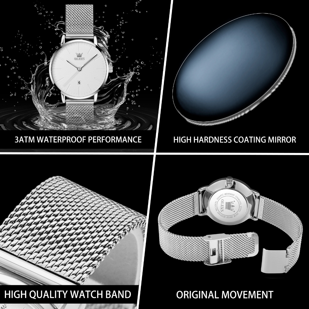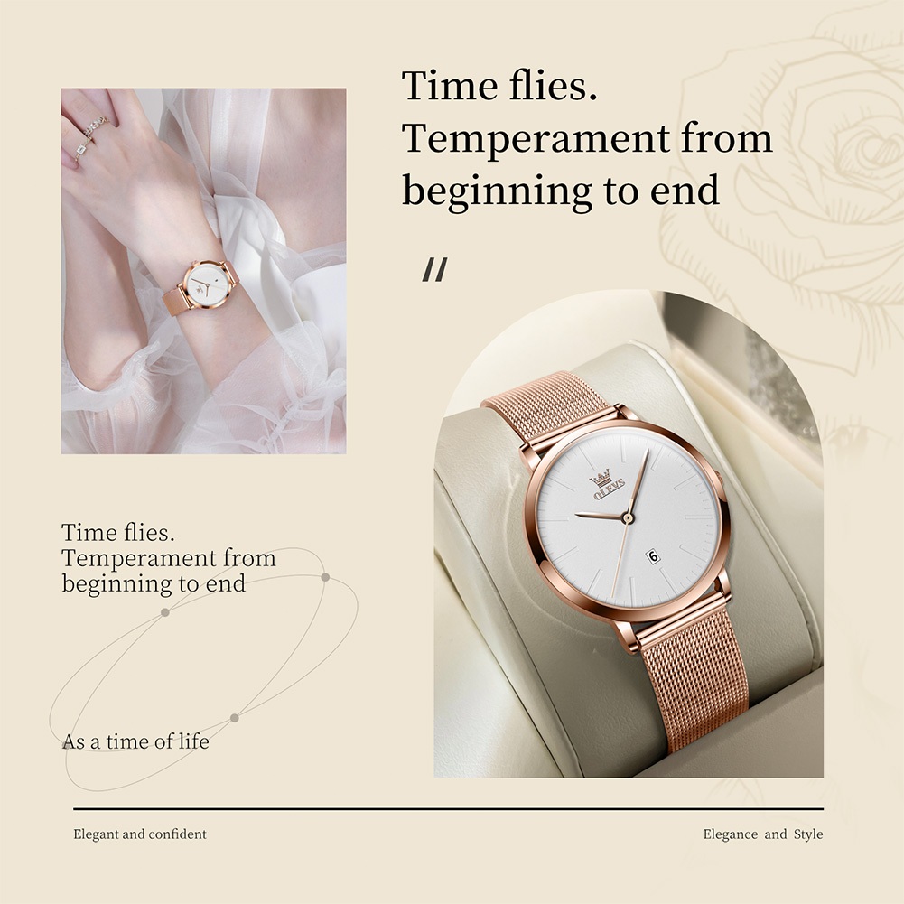 Olevs Jam Tangan Wanita Original Anti Air Jam Tangan Wanita Rantai Kecil Stainless Steel Elegan Cewek Analog Tipis Kuars