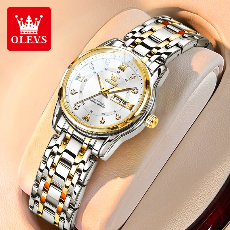 Olevs Jam Tangan Wanita Original Anti Air Tahan Air Kecil Korea Analog Putih Gold Hitam Stainless Steel Women Watch Mode