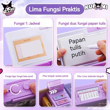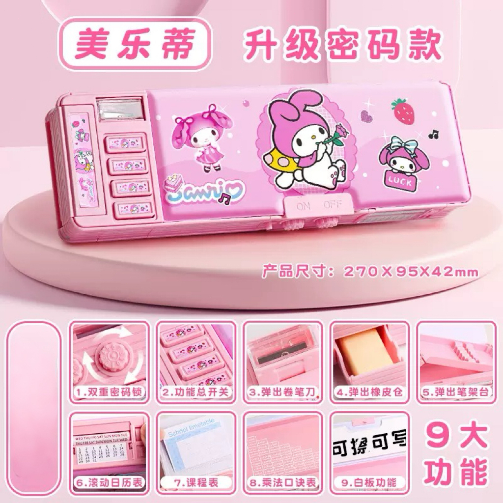 【Ready Stock】Tempat pensil multifungsi Kulomi untuk anak perempuan dengan kunci kata sandi Tempat pensil otomatis untuk