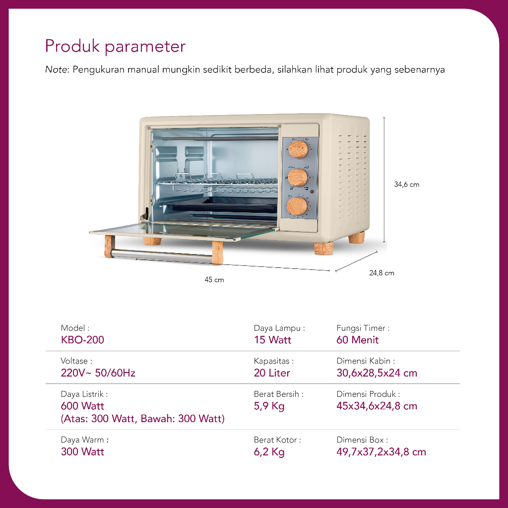 Kirin Omni Oven 20 Liter KBO-200 / Oven Listrik Low Watt/ Pemanggang