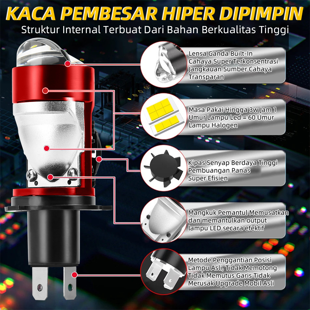 Lampu Projector LED H4 160W PROJECTOR BILED Cahaya Terang Berkualitas Tinggi Bisa Untuk Mobil/Motor