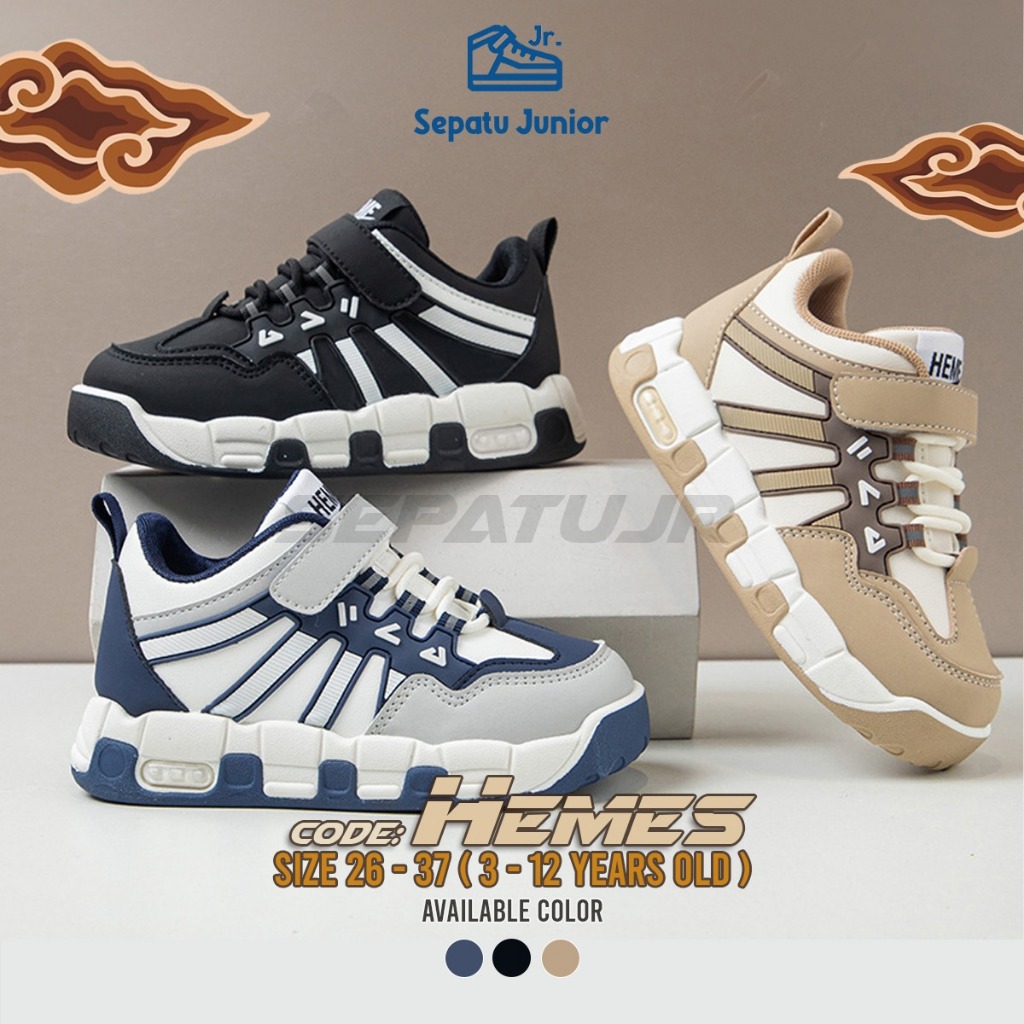 SepatuJR - Sepatu Sneaker Anak Fashion Casual Anak Laki Laki Umur 3-13 Tahun Model Perekat Velkro e HEMES