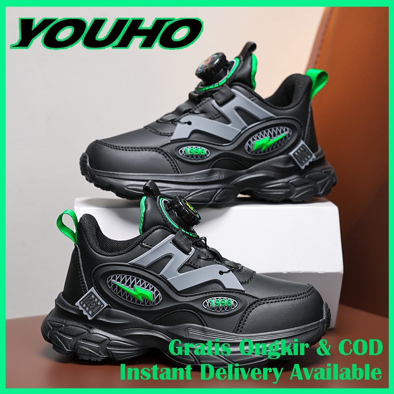 J402 Sepatu Anak Baru Sepatu Kampus Bahan Kulit Kualitas Tinggi Ukuran 28-40 Sepatu Anak Warna Hitam