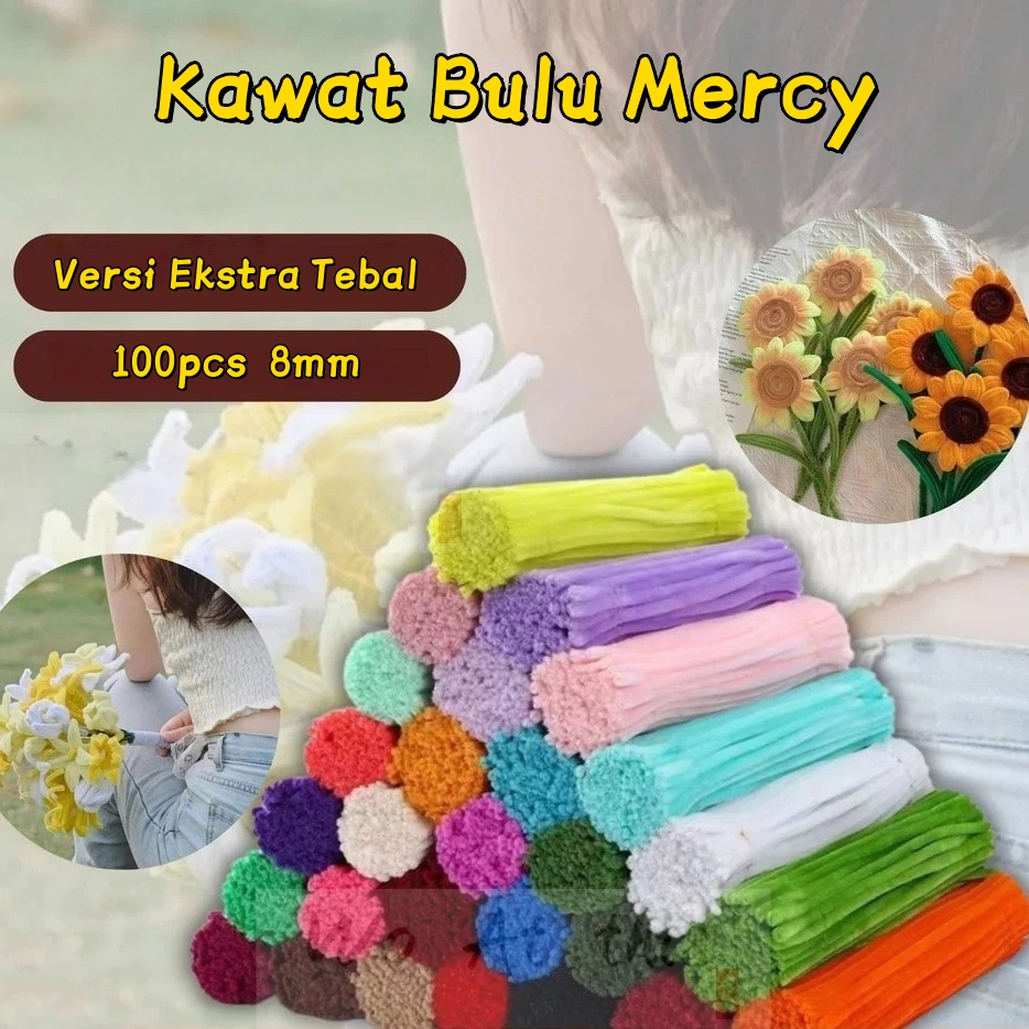 100pcs Kawat Bulu Mercy Pipe Cleaner Premium Gembul 30cm / 8mm Bahan DIY Manual