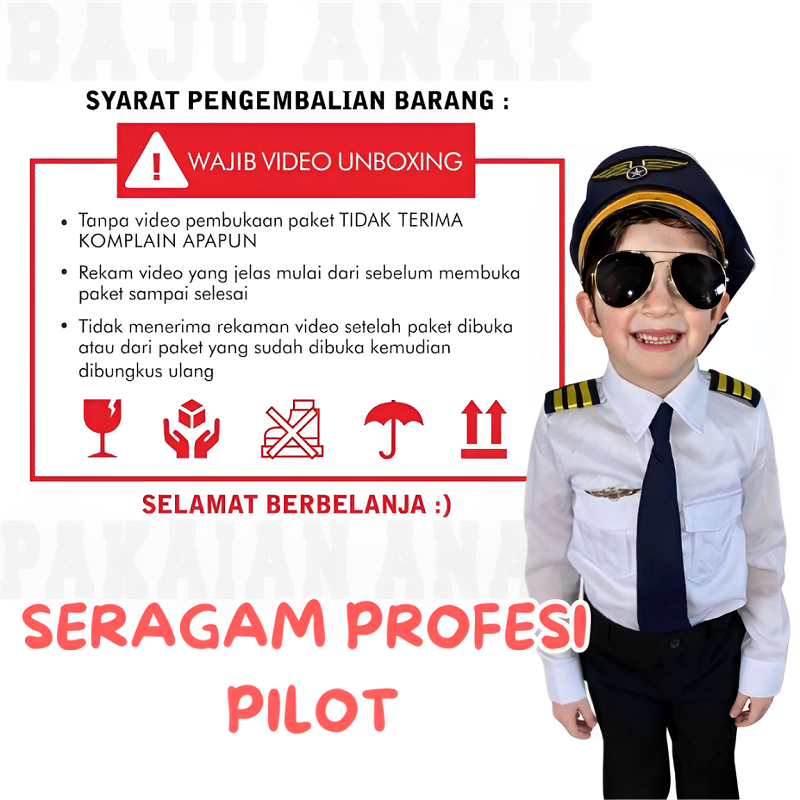Baju Pilot Anak Tk Paud/Custom Baju Karnaval Pilot Anak Size S-M-L-XL-XXL