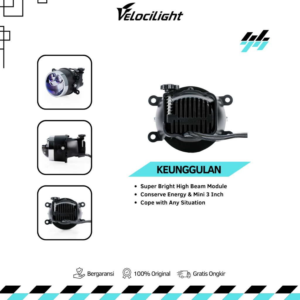 Foglamp Biled 100W 3 Inch Projie Cut Off Laser Super Terang 3 Warna Tembus Hujan PF1 - LUXIMOS NINE