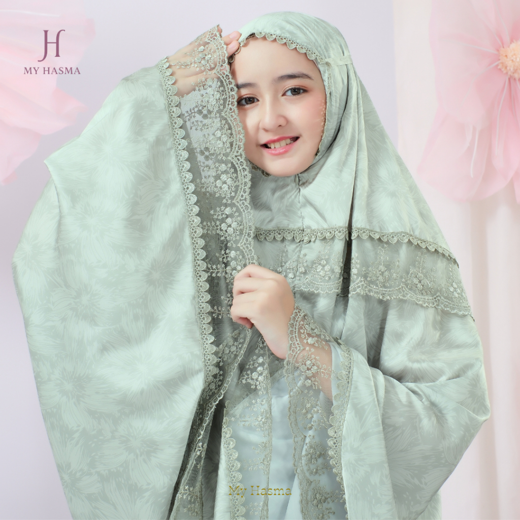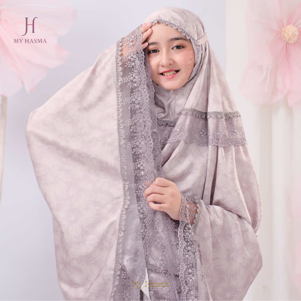 My Hasma - Mukena Anak Perempuan Remaja 2In1 Renda Santorini Silk Putri Salju Safiya Series My Hasma