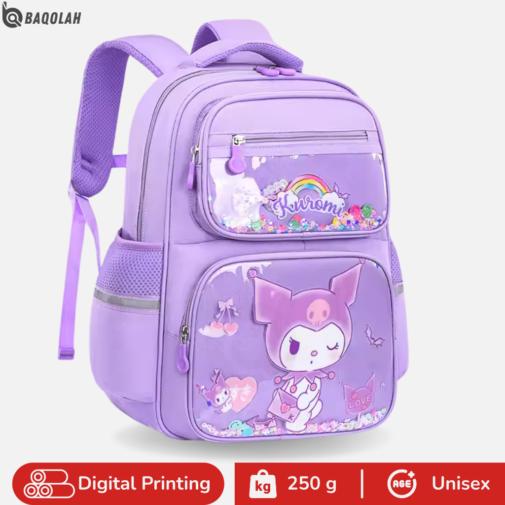 BAQOLAH Tas Ransel Anak Kuromi All Rainbow R057BQ Warna Ungu Large Capacity