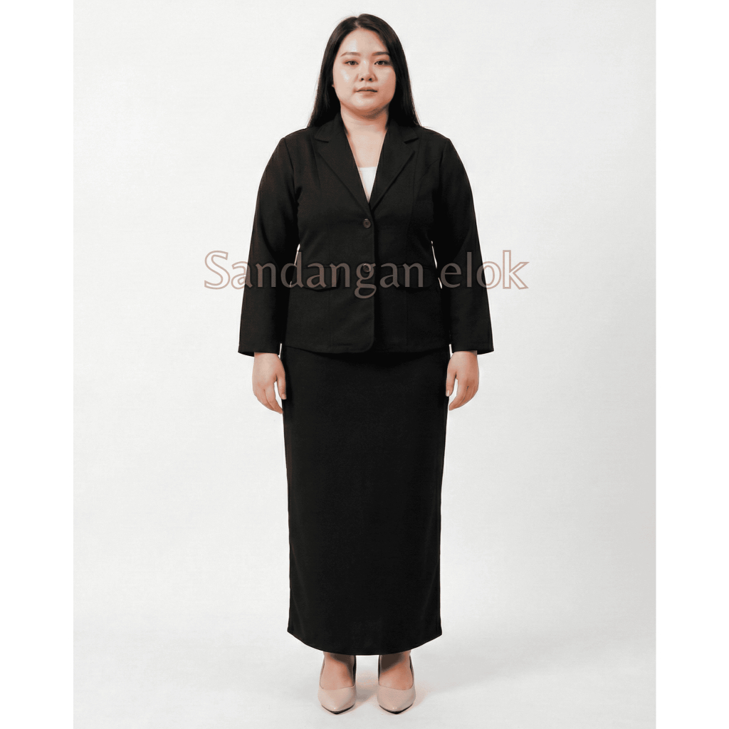 One Set Blazer Dan Rok Span Panjang Jumbo - Setelan Jas Sidang Skripsi Wanita Jumbo