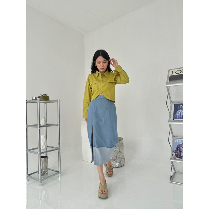 Peachpoppy - Velmorra Long Skirt - Denim Rok Cargo - Cargo Premium - Rok - Rok Wanita
