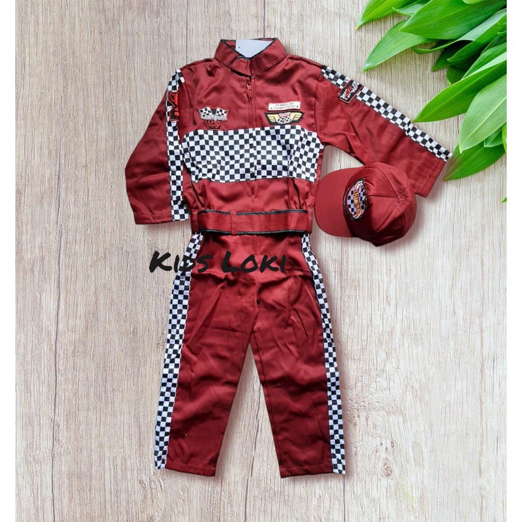 Kostum Profesi Pembalap Cilik baju balap Stelan Pembalap Anak Seragam Balap Cilik kostum Carnaval Pakaian anak Laki-laki