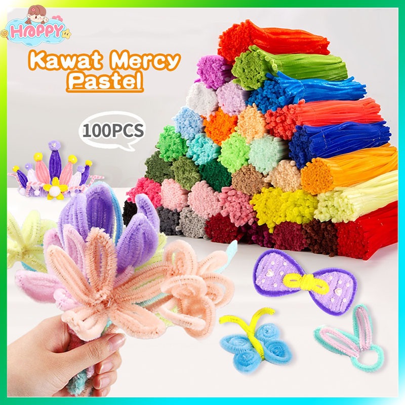 Malaikat heppy Tingkatkan versi 30CM Kawat Bulu Mercy Polos /pipe cleaner Pastel Macaron isi 100pcs Mix Warna