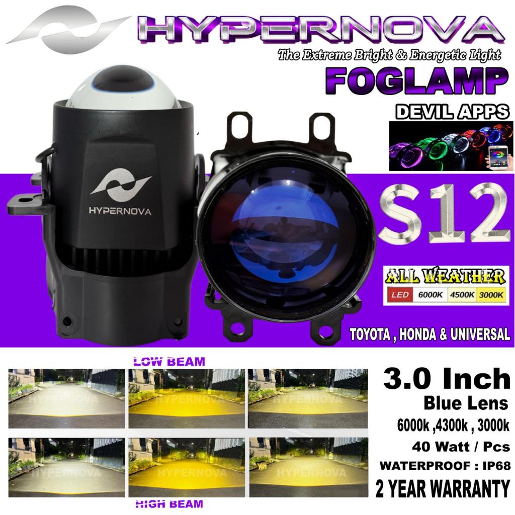 HYPERNOVA - ORIGINAL LAMPU FOGLAMP BILED S12 80 WATT BLUELENS FOGLAMP 3 WARNA 1 WARNA LAMPU MOBIL KABUT - S12 3 WARNA, U