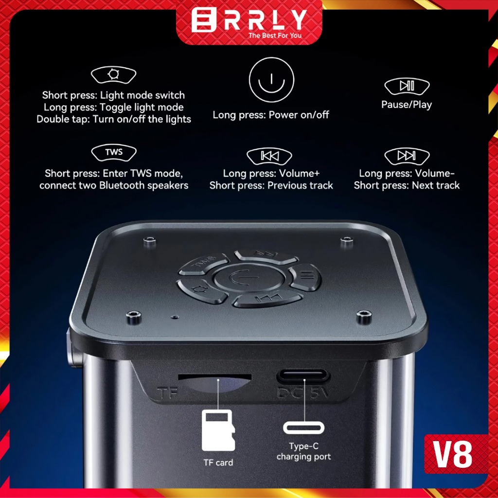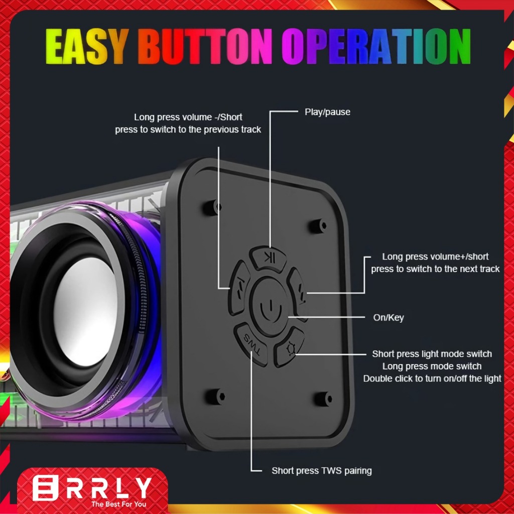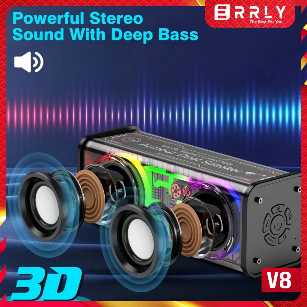 V8 ARMOUR Speaker Bluetooth V8 10W Double Subwoofer Music BASS RGB LED Light Transparent