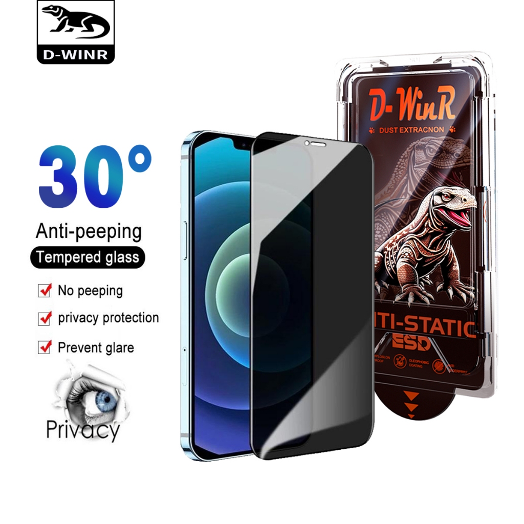 tempered glass dwinr anti spy for iphone 16pro max 15 promax 14 promax 13 pro max easyInstallKit superfit autofit