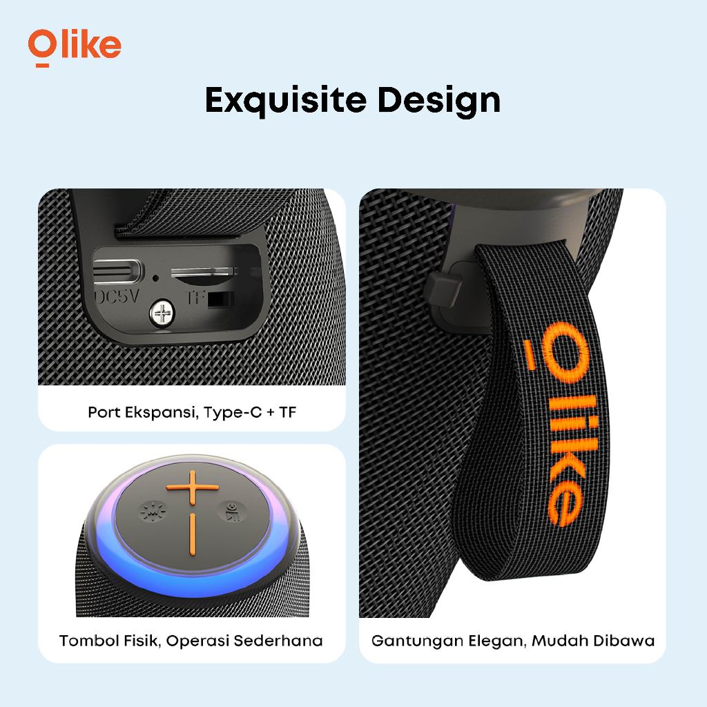 speaker bluetooth OLIKE SF11 LED ligth IPX4 HD Audio stereo Bass Max ORIGINAL GARANSI RESMI