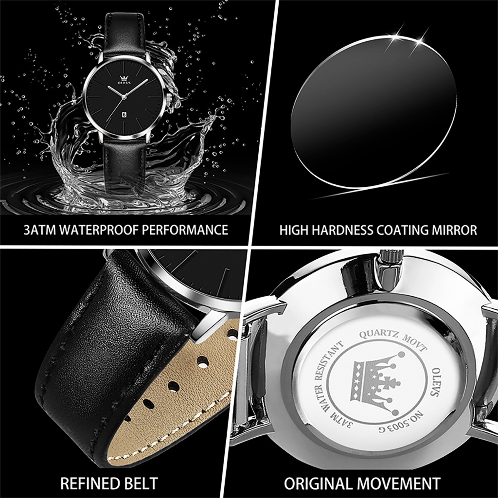 Olevs Jam Tangan Wanita Kecil Analog Kulit Strap Jam Tangan Kuarsa Cewek Original 100 PERSEN Anti Air 5003