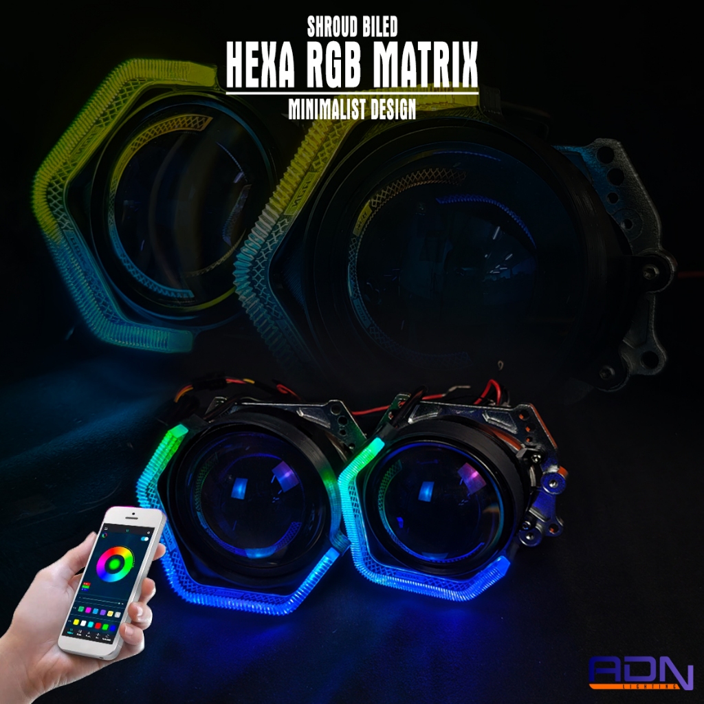 ADN Shroud BILED PROJECTOR Hexa Matrix RGB – Minimalist Design, Full App Control (2.5 & 3 Inch) MOTOR MOBIL