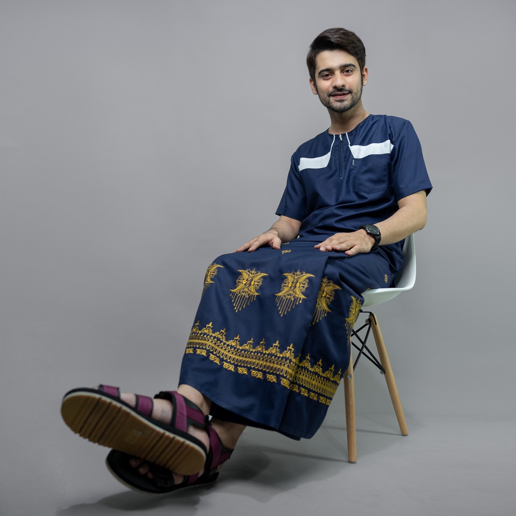 Katsae - Sarung Bordir Pintu Aceh Motif Timbul Keren Sarung Pria Dewasa Sarung Sholat 100% Bordir warna Navy