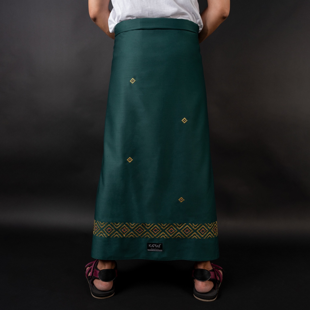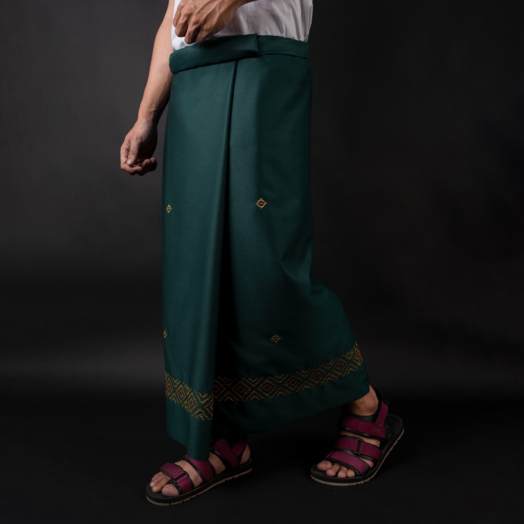 KATSAE Sarung Bordir Motif Diamond Embroidery Timbul Sarung Pria Dewasa Warna Green Sarung Sholat 100% Bordir Asli