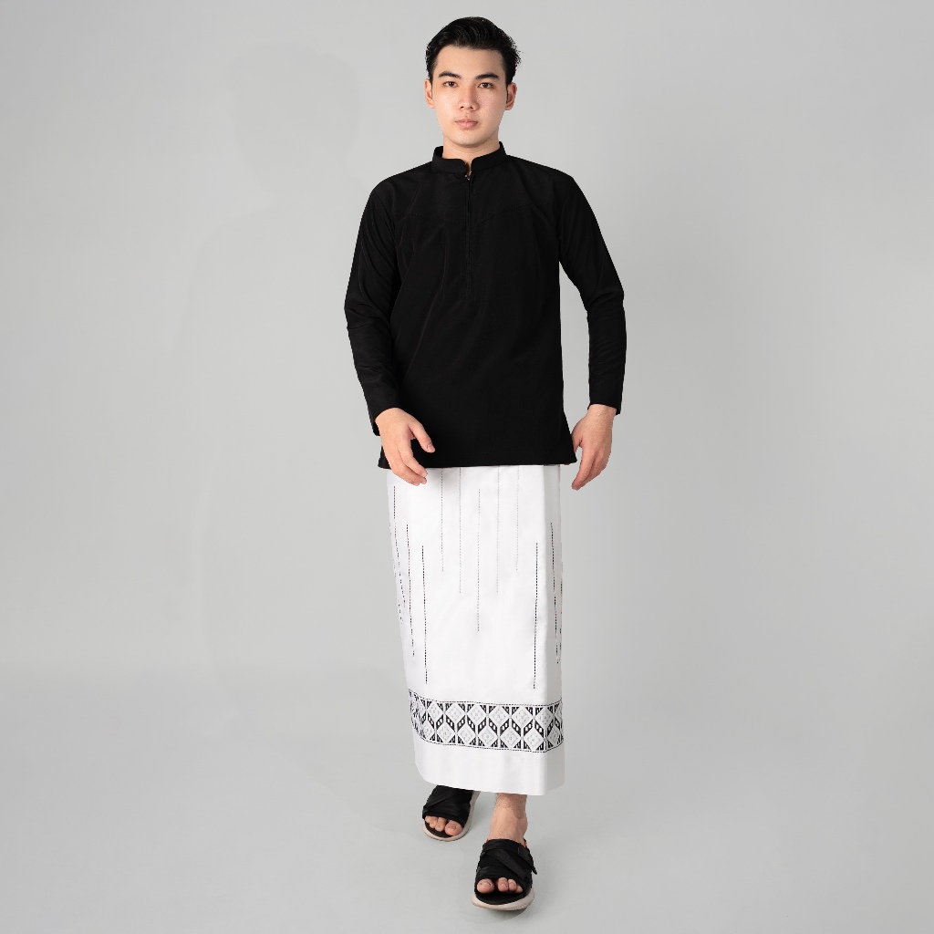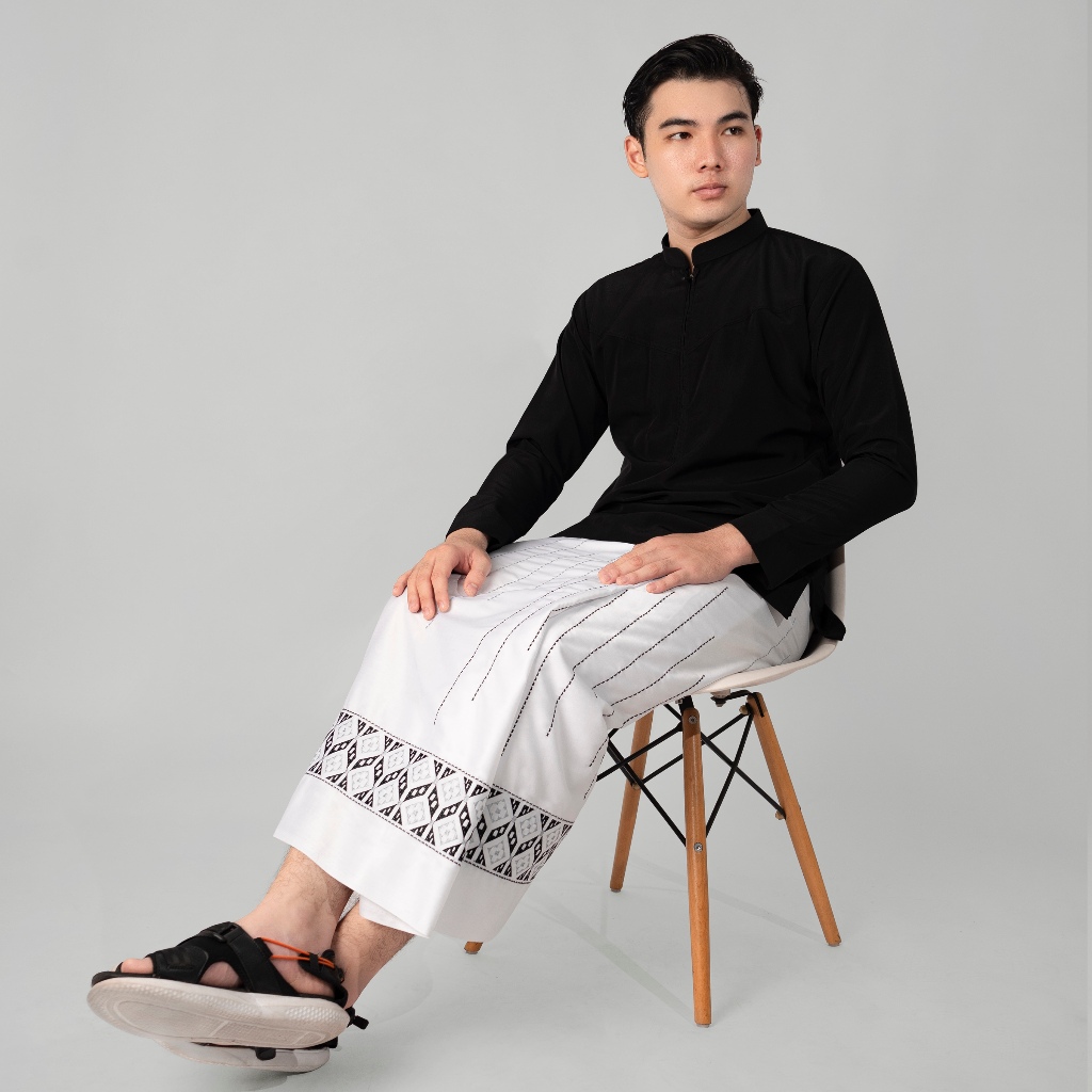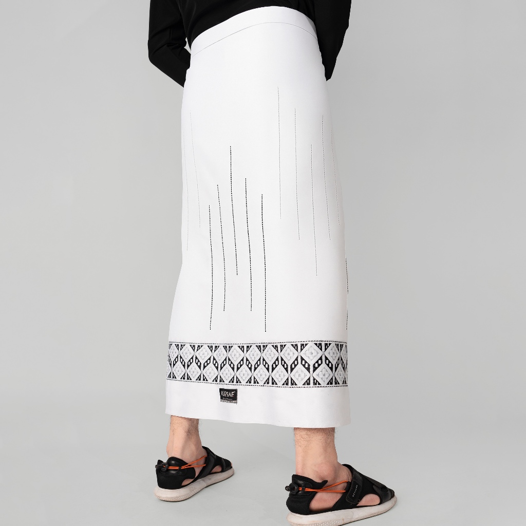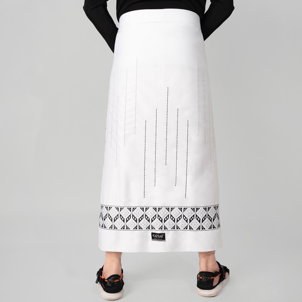 Katsae - Sarung Bordir Motif Farabi Bordir Timbul Sarung Pria Dewasa Warna Putih Sarung Sholat 100% Bordir Asli