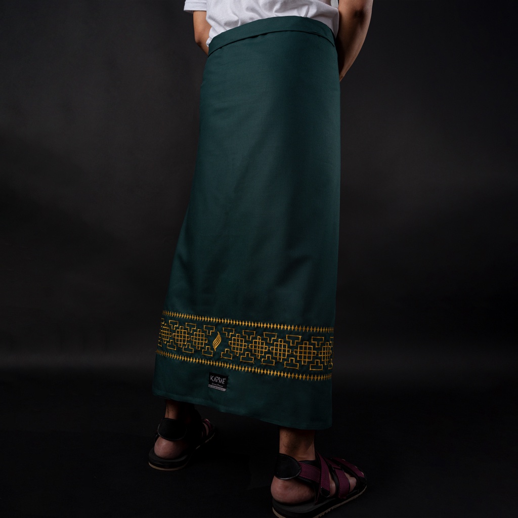 KATSAE Sarung Bordir Motif Mozaik Embroidery Timbul Sarung Pria Dewasa Warna Green Sarung Sholat 100% Bordir Asli
