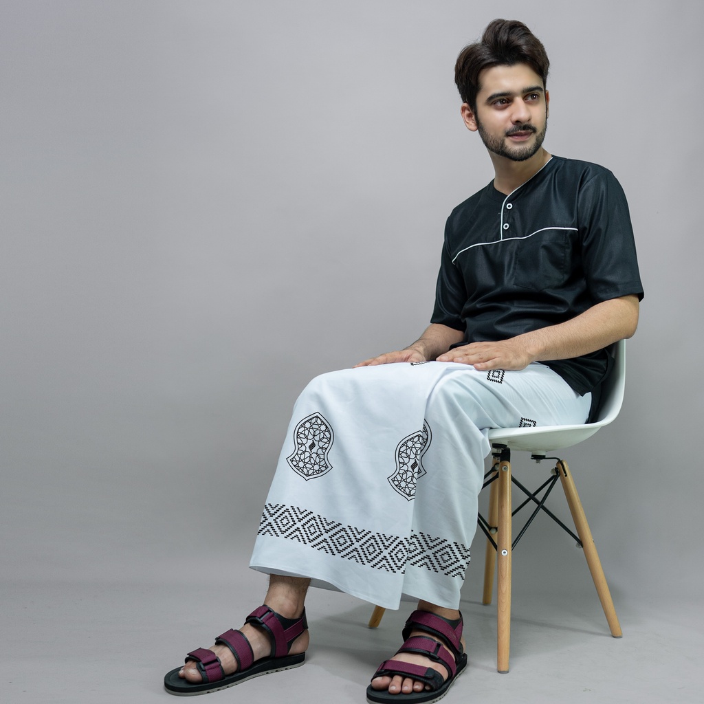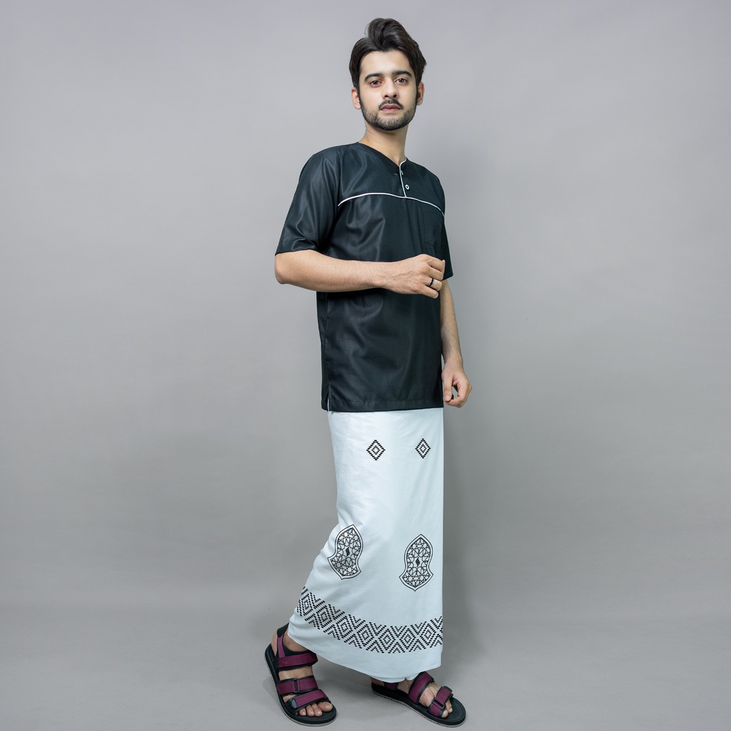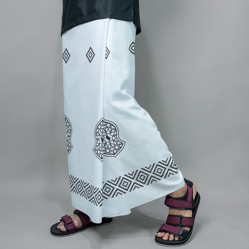 Katsae - Sarung Bordir Motif Terompah Bordir Timbul Sarung Pria Dewasa Warna PUTIH Sarung Sholat 100% Bordir