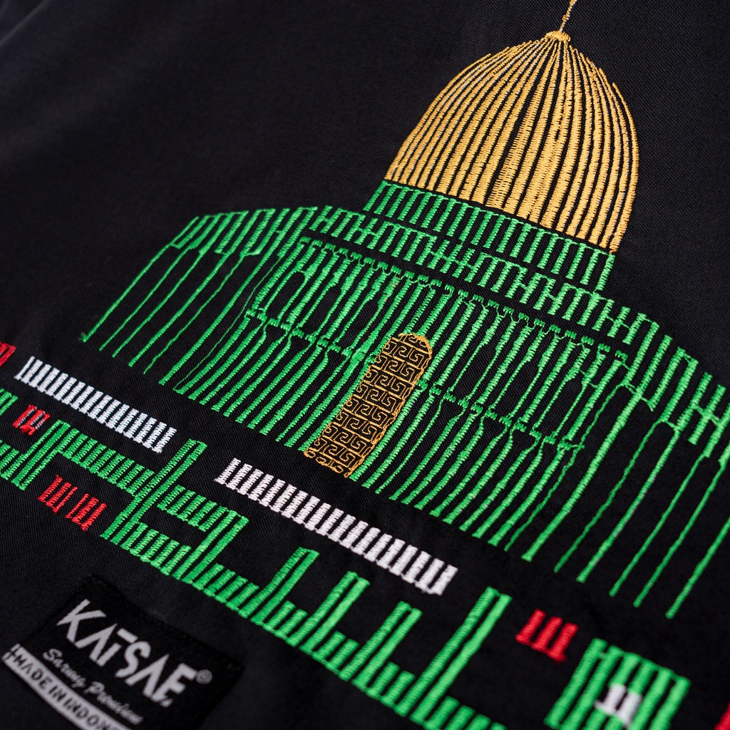 Katsae - Sarung Bordir Motif AL-QUDS PALESTINA 100% Timbul Sarung Pria Dewasa Sarung Sholat Hitam