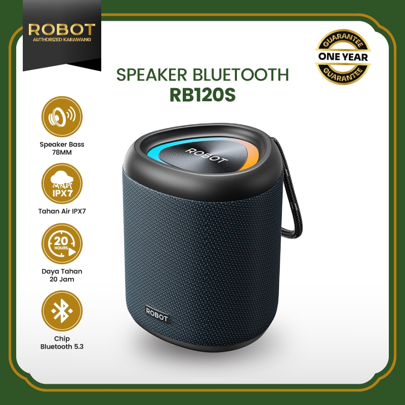 ROBOT Speaker Bluetooth 15W IPX7 Waterproof Super Bass 78mm RGB Light Speaker Portabel Bluetooth 5.3 Original - RB120S