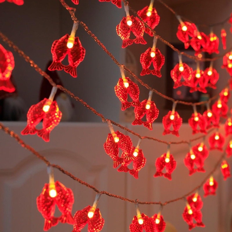 lampu lampion imlek string ikan koi merah hoki meihua 5 mode kabel pohon sakura imlek fish lamp red