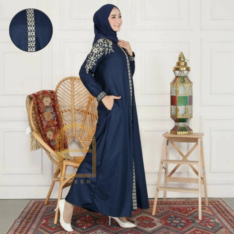 Qiarinn - Gamis Bordir Renata Bahan Katun Toyobo